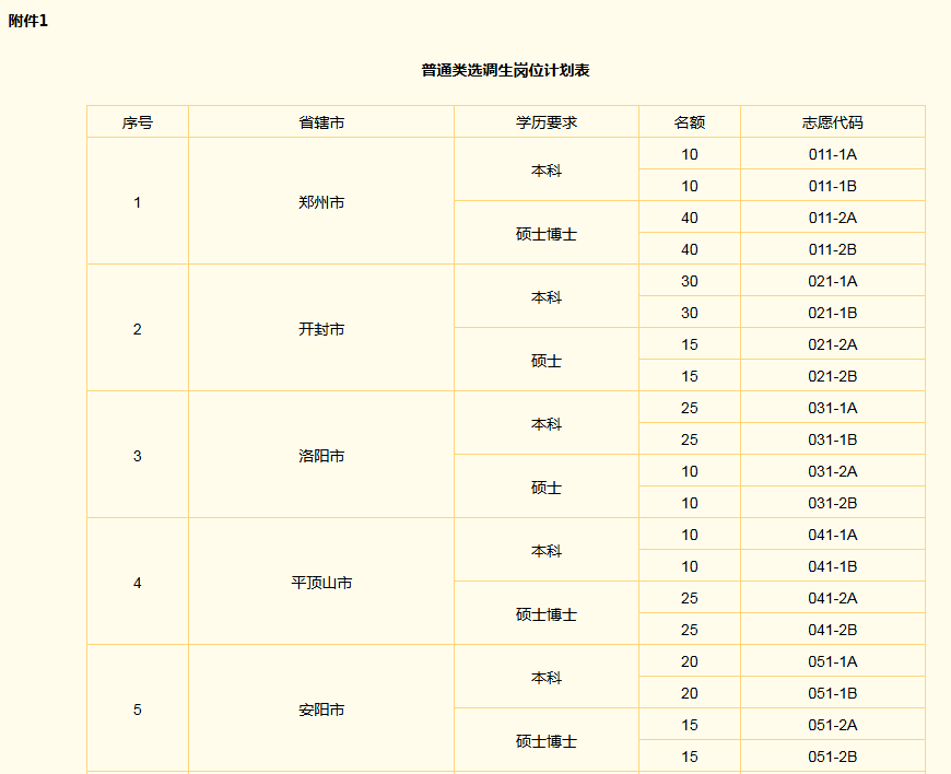 各省辖市 (含济源示范区、郑州航空港区,下同)招录计划见附件1、2。